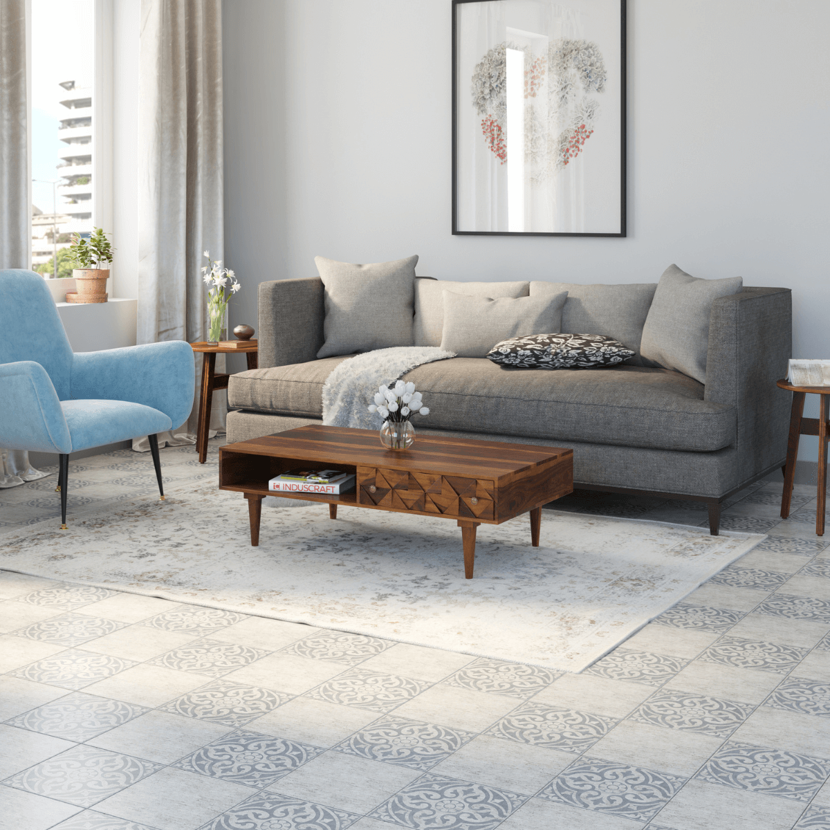 Meet the Ashley coffee table, where artistic craftsmanship meets practical living in perfect harmony. This stunning wooden coffee table combines the natural beauty of premium Sheesham wood with thoughtful storage solutions, creating a centerpiece that serves your daily needs while showcasing exceptional design. The hand-carved geometric patterns and warm, polished finish bring sophistication to any room, while the spacious tabletop, concealed drawer, and open shelf provide versatile functionality. Whether your space reflects modern minimalism or classic traditional style, this solid rectangle coffee table adapts beautifully to complement your decor. Make this remarkable piece the foundation where your family gathers and memories unfold.