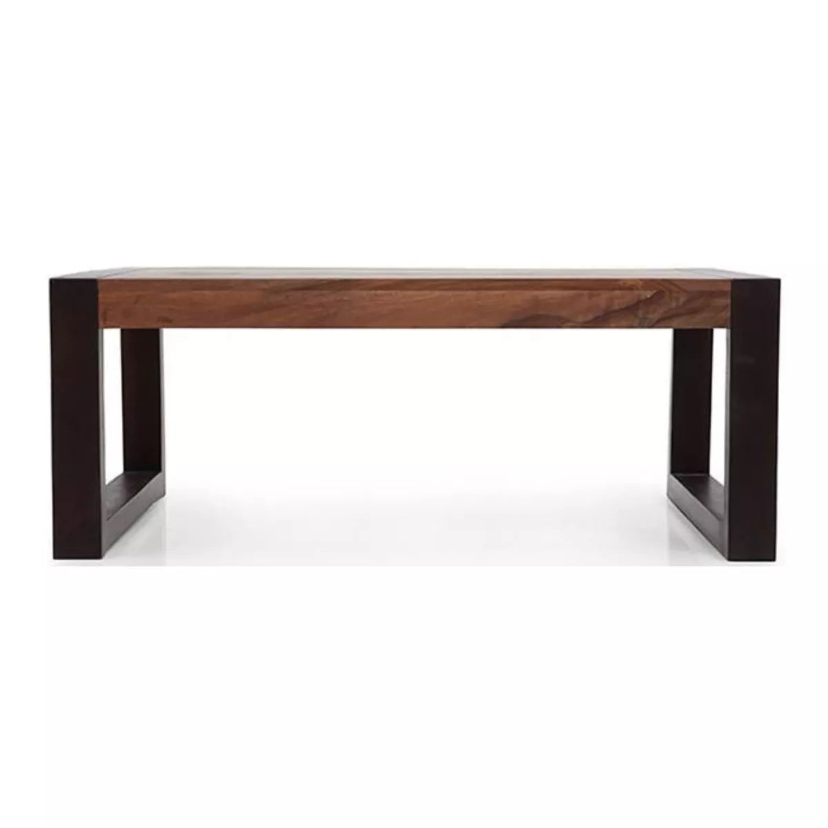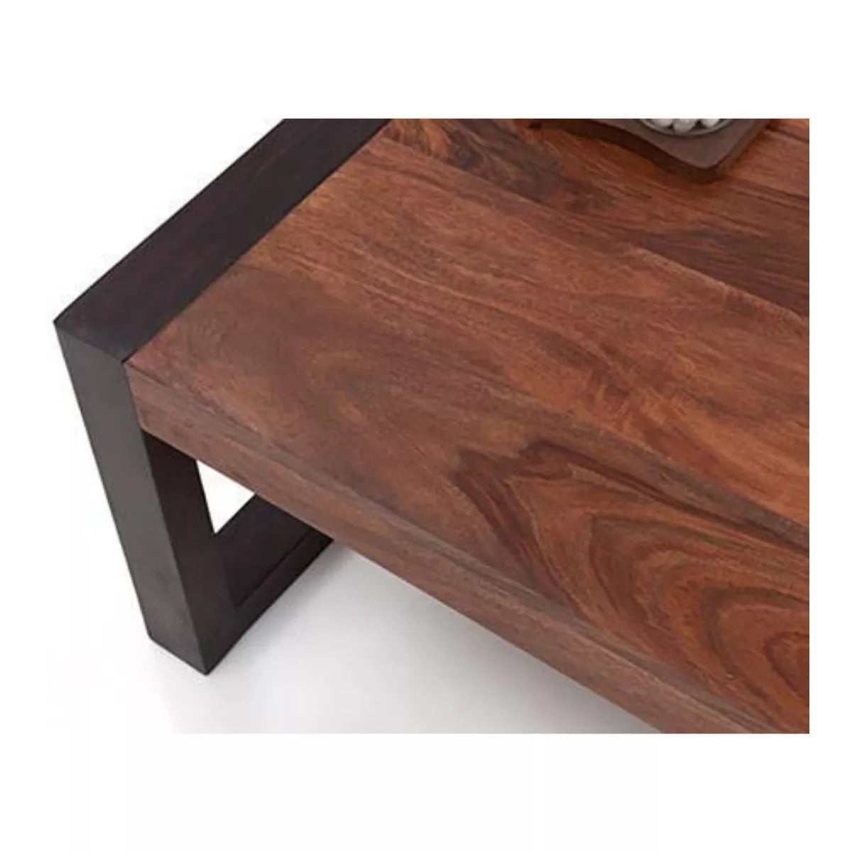 Premium Sheesham Wood Top: The tabletop is constructed from 100% solid Sheesham wood, celebrated for its rich, distinctive grain and exceptional hardness. This premium material ensures your wooden coffee table isn't just a statement piece but a long-lasting investment. The natural teak finish highlights the wood's inherent beauty, promising durability that stands up to everyday use for years to come.