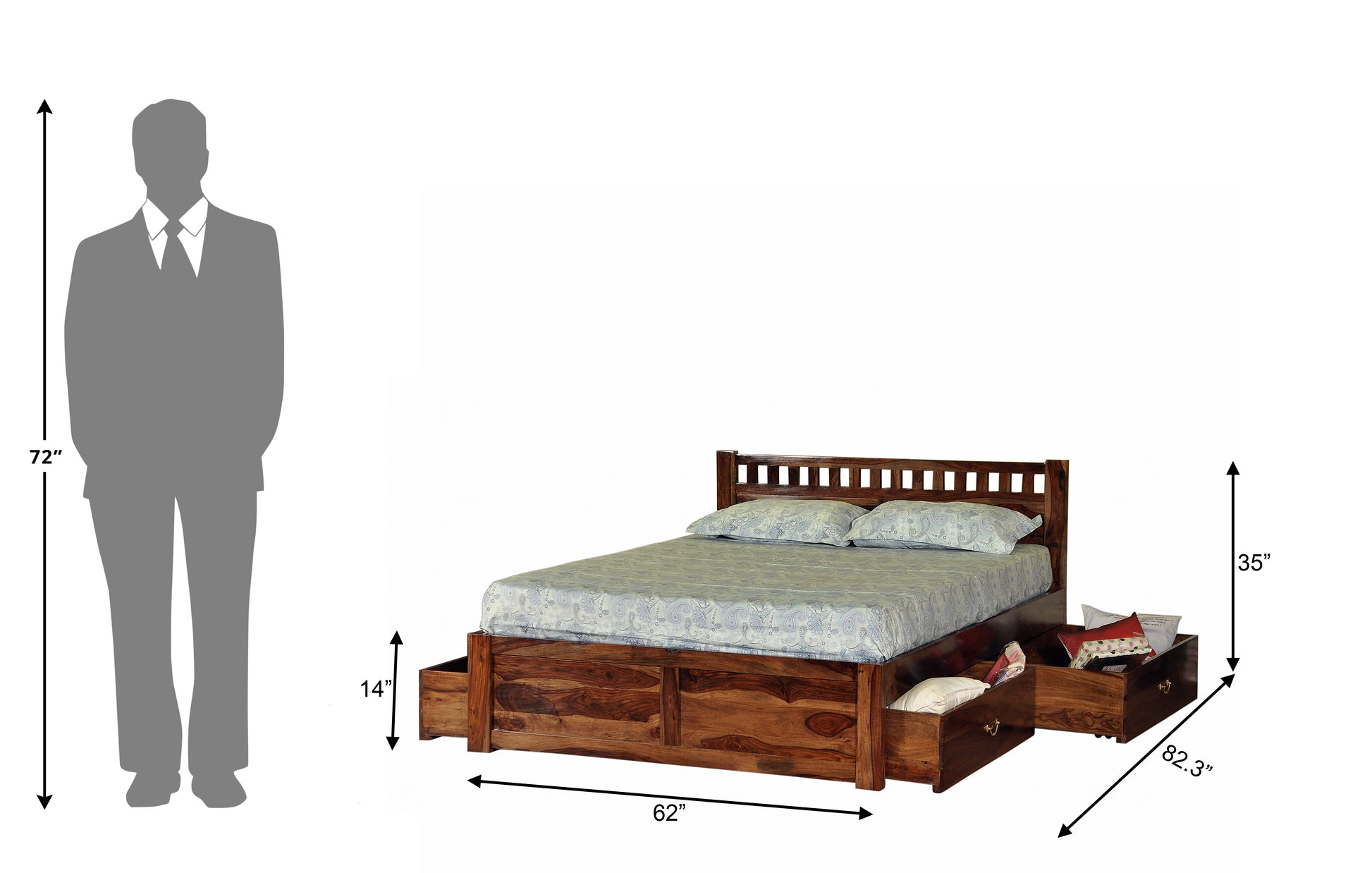 Ethina Bed by Induscraft in Solid Sheesham Wood with Box Storage (King and Queen Size)